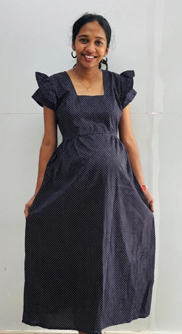 Home Wear With Double Sleeve-Navy Blue